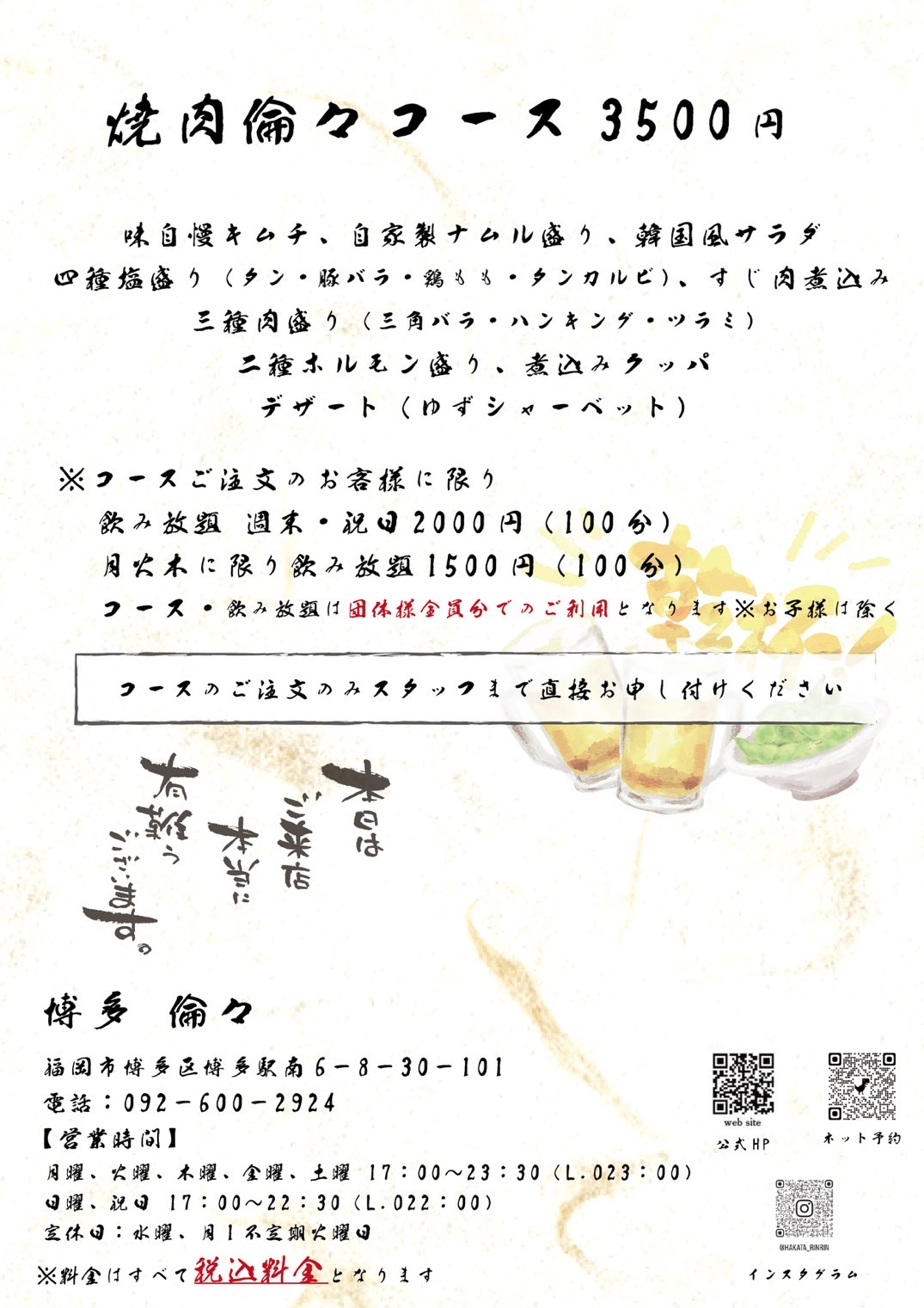 ●博多倫々へのお席のご予約は↓ページ先より承っております。