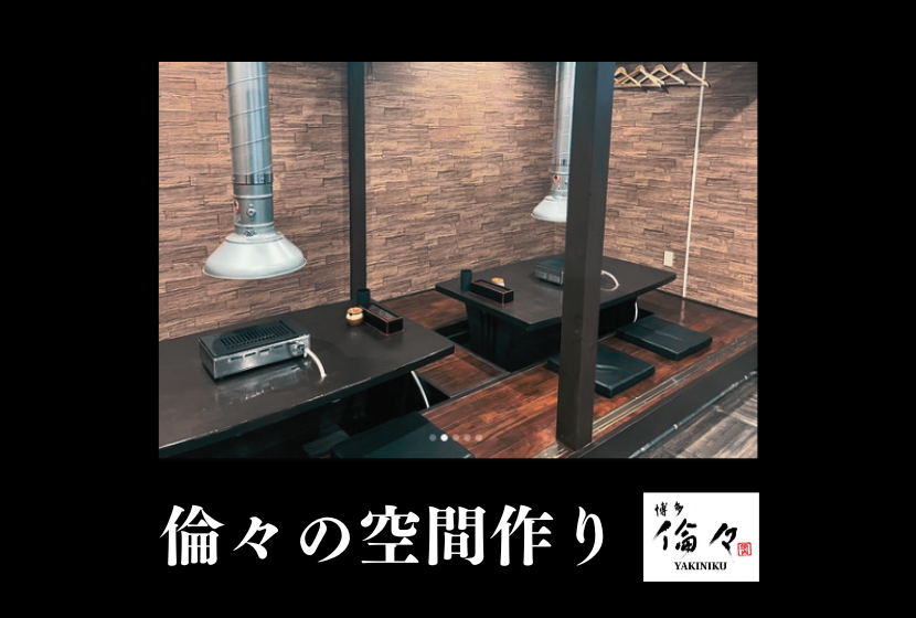 ●お席の様子は ▷ 博多倫々のこだわりの空間づくり – おひとり様でも団体様も快適に楽しく焼肉を! をご確認ください。